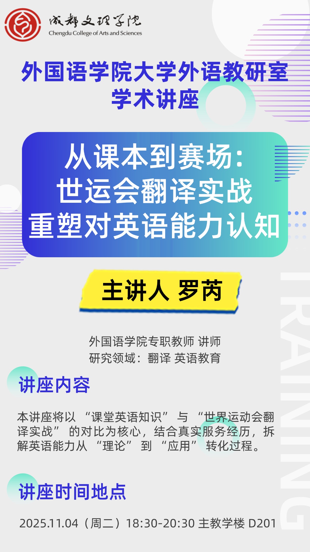 讲座预告:从课本到赛场:世运会翻译实战,重塑对英语能力的认知