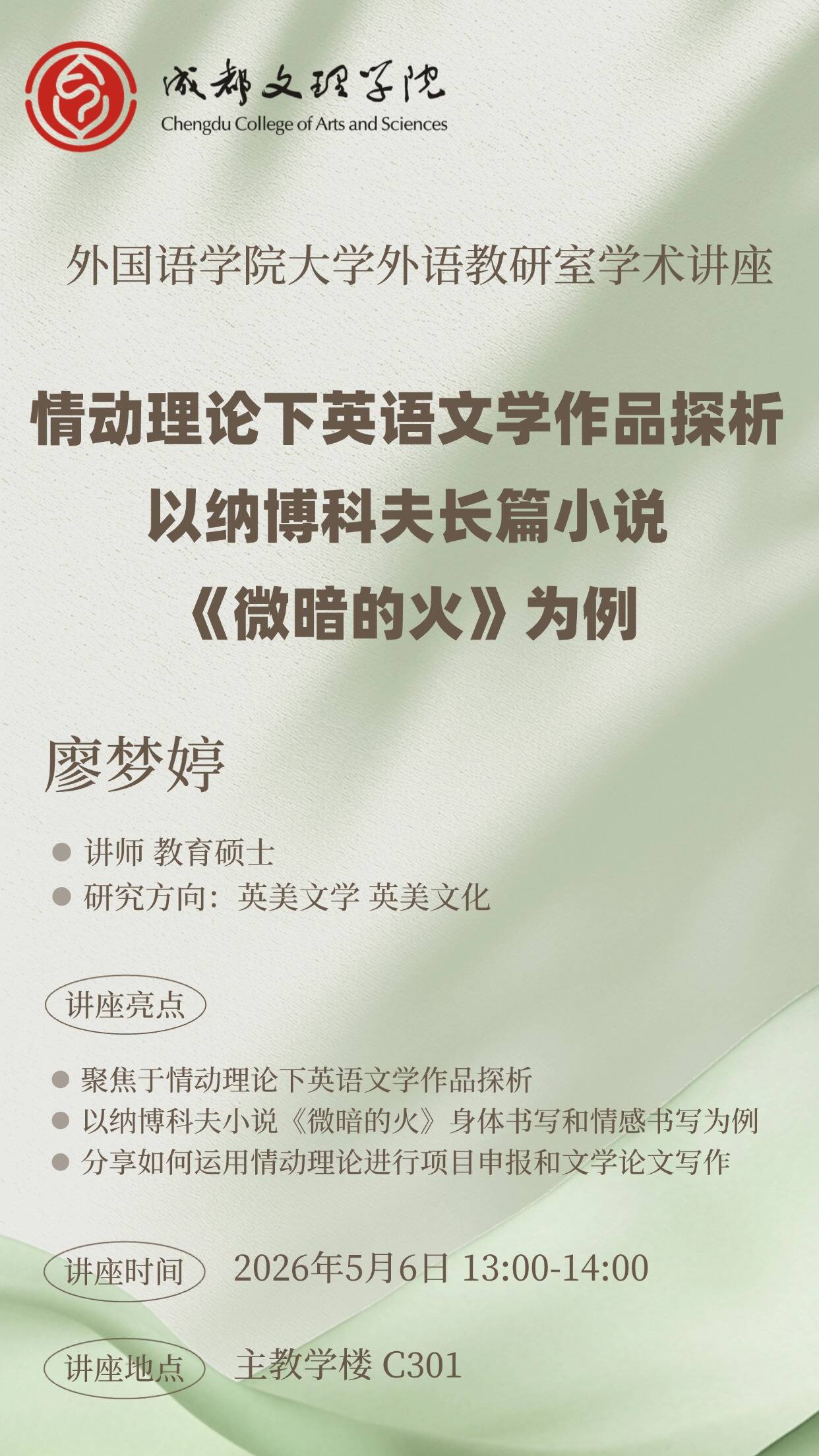 讲座预告:情动理论下英语文学作品探析以纳博科夫长篇小说《微暗的火》为例