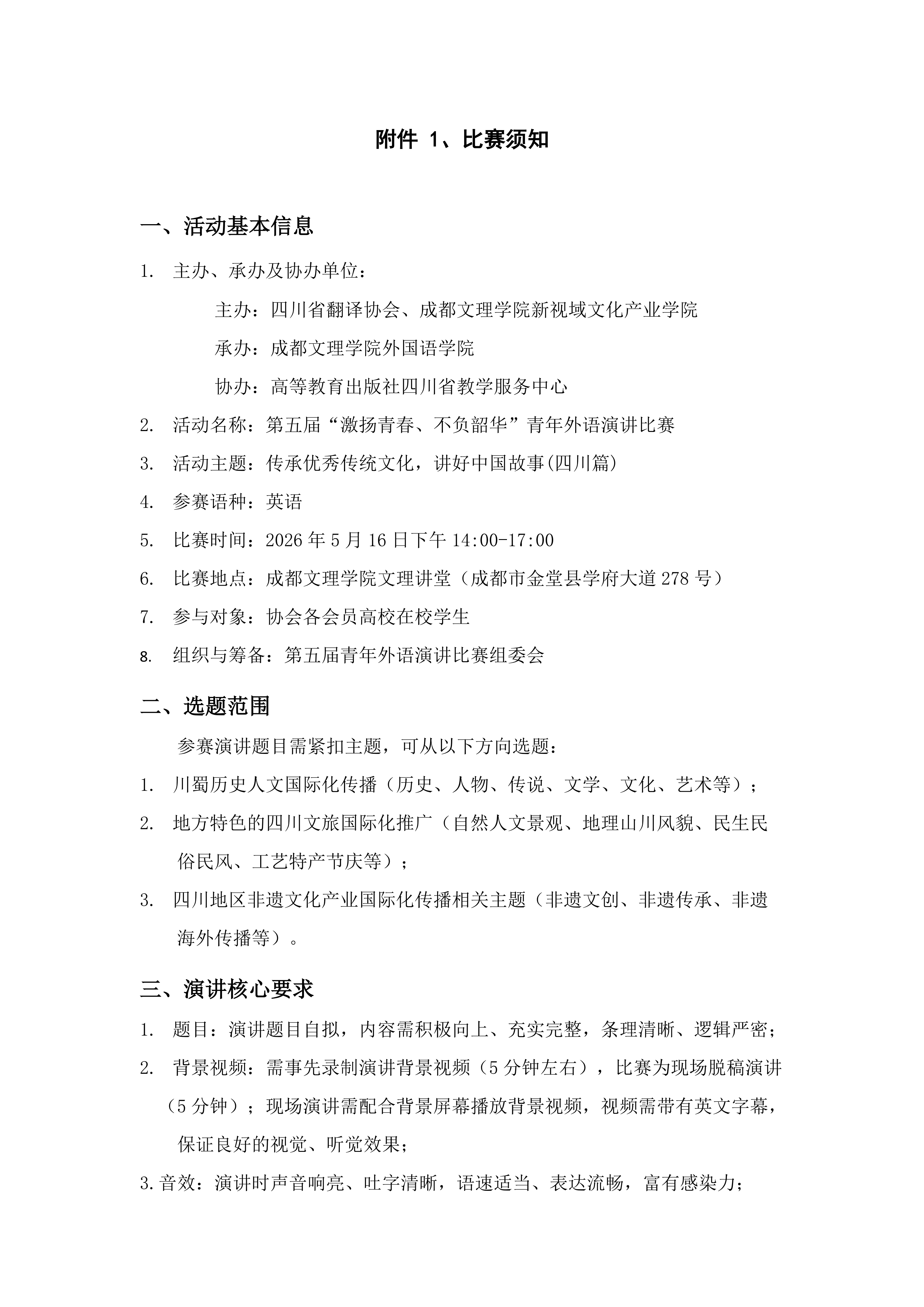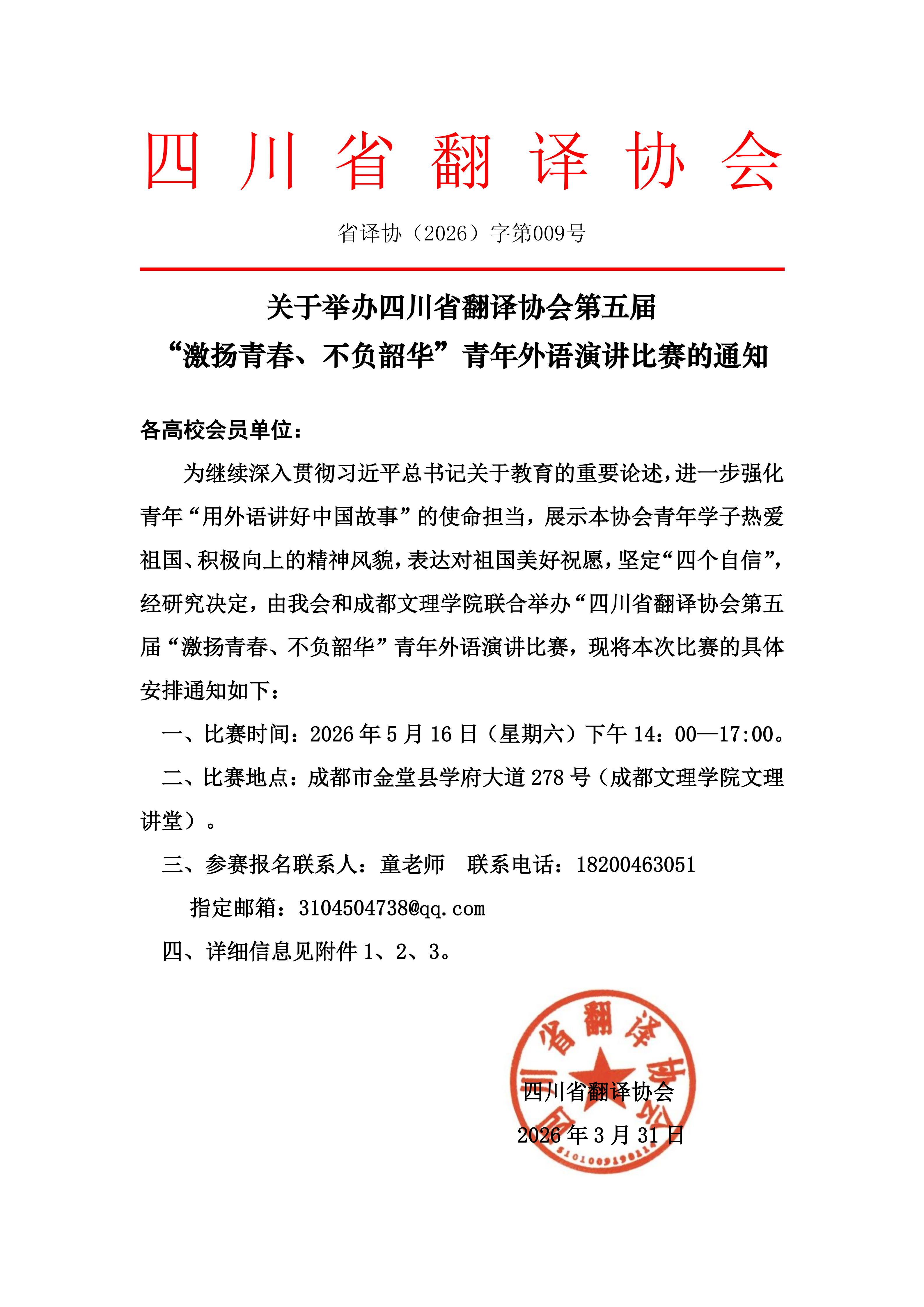 关于举办四川省翻译协会第五届 “激扬青春、不负韶华”青年外语演讲比赛的通知