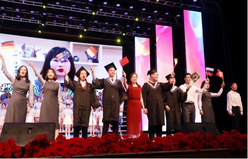毕业生晚会在高书记的致辞中正式拉开序幕,高书记表示,“此去山高水长,望君多珍重;虽有万般不舍,终需解缆启航。有人说,青春兵荒马乱,未来星河璀璨。祝2021届毕业生前程似锦,生活幸福!”向即将踏上人生新征程的2021届毕业生们表示最热烈的祝贺。毕业晚会表演由青春洋溢的开场舞《不说再见》展开,带动了场下观众的热情。回望尽头留下青春岁月,展望前方不尽似水流年,外国语学院带来的歌舞《Have it All》勾起了大家对大学生活的无尽回忆,毕业生们深情地倾诉着对母校和学院的眷恋不舍之情,老师们衷心地祝愿同学们未来道路一帆风顺。节目圆满完成!紧接着各种节目轮番登场,异彩纷呈,魅力四射。此次毕业晚会取得了巨大的成功。