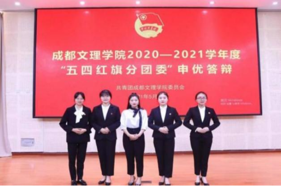 2021年5月27日13:30,成都文理学院2020-2021学年度“五四红旗分团委”申优答辩在学生工部105举行。由团委书记刘洋绪老师、团委指导老师张丽莉老师、罗凯伦老师、各学院分团委书记组成的评委团及各二级学院答辩代表出席本次会议。外国语学院黄婷涵、王思月、何静同学作为我院答辩代表参与本次答辩活动。