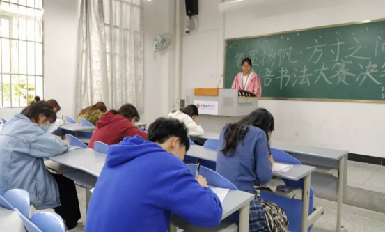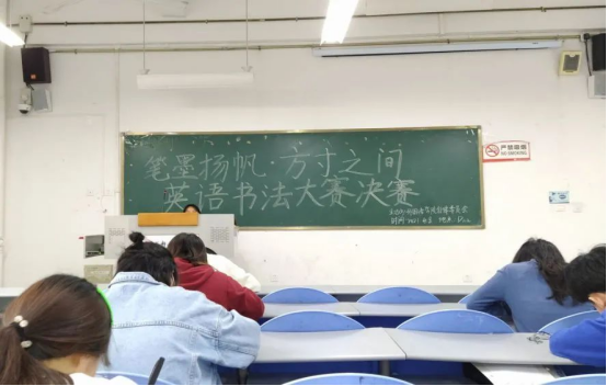 2021年4月8日13:30 ~ 14:00,外国语学院自律委员会于主教学楼D112顺利举办了“ 笔墨扬帆,方寸之间”英语书法大赛决赛。主席夏与淞出席本次大赛。大赛期间,秩序井然。选手们奋笔疾书,全力以赴。此次英语书法大赛增强了同学们学习英语的兴趣和自信心,规范同学们的英语书写,培养良好的书写习惯,丰富同学们的校园文化生活,为同学们提供了一个展示自我的舞台,意义非凡!