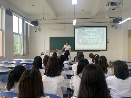 外国语学院2021届毕业生代表在会上积极发言,分享自己在文理学习生活的收获与感悟,讲述自己的实习、就业等经历,也表达了对母校和老师的感激之情。同时还结合自身经历,从专业学习、课程安排、国际交流、职业发展、第二课堂等多方面提出建设性意见和建议。