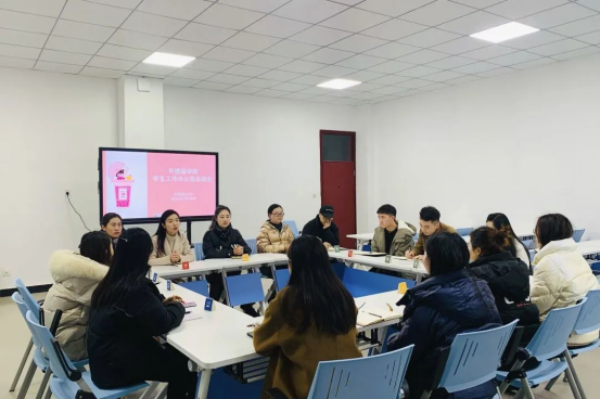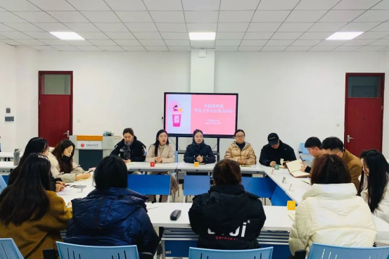 2022年1月10日上午9时,外国语学院学生工作办公室在行政楼A130召开2021至2022学年第一学期学工办总结会议,党总支副书记苏凌函,学工办主任徐杏及全体辅导员参加此次会议。