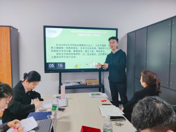 为不断提升辅导员的理论水平、专业素养和职业能力,全面提高辅导员队伍育人工作水平,外国语学院积极响应学校第九届辅导员技能大赛工作方案要求,于3月29日至30日组织举办了学院初赛,分设学生辨识、主题宣讲、谈心谈话三个环节。外国语学院党总支副书记苏凌函担任主评委,大赛筹备组成员、学工办主任徐杏担任主持人,全体辅导员参赛。