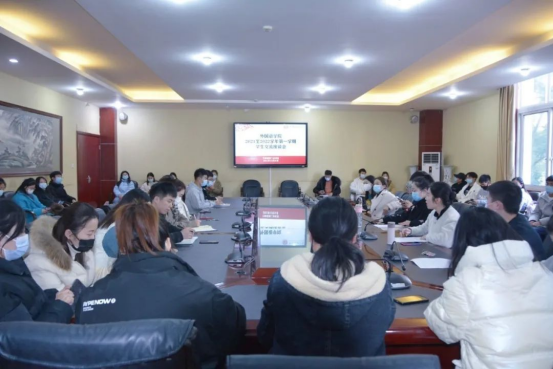 11月24日12时,外国语学院于行政楼第二会议室顺利召开11月学生交流座谈会。党总支副书记苏凌函,学工办主任徐杏,教学秘书刘涛,学工办全体辅导员以及大一至大四各班共38名学生代表参加本次座谈会。