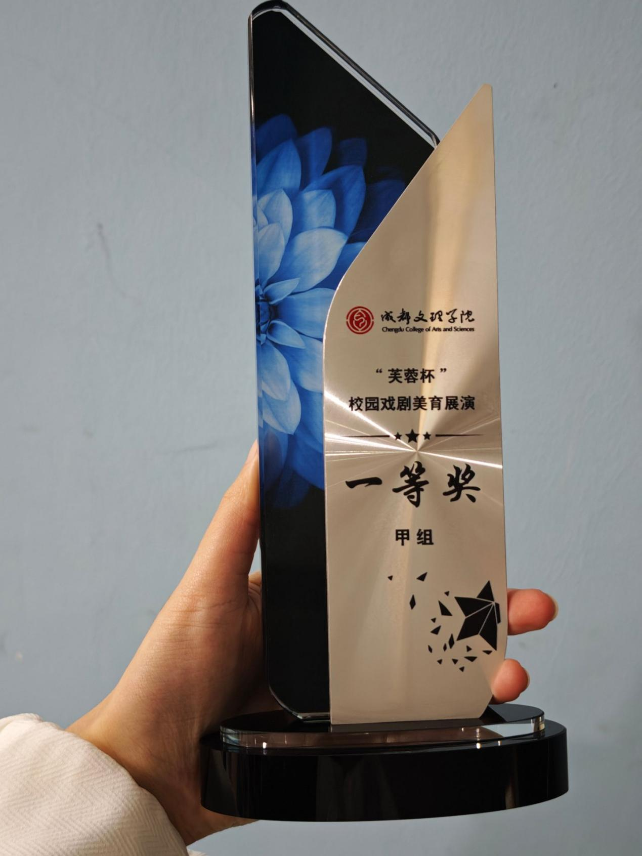 2025年11月12日晚间,艺术楼106黑匣子剧场内氛围热烈,成都文理学院首届“芙蓉杯”校园戏剧美育展演闭幕式暨颁奖典礼于此圆满举办。外国语学院选送的剧目《罗密欧与朱丽叶》表现出众,荣膺课本剧一等奖,外国语学院获得优秀组织奖。
