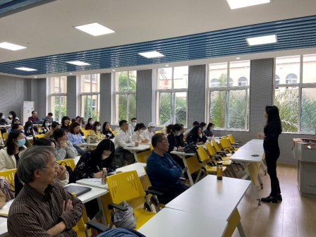 会议的第一阶段,余霞主任总结了9月外国语学院在网络教学过程中存在的教学问题和困境。余主任分别从教师授课层面和学生上课层面,全面剖析了教学过程中存在的不足,并对于如何更好地适应当前的教学环境以及提升课堂教学质量,向全体老师提出了具体要求。