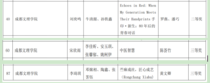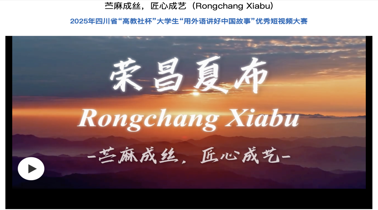 近日,2025年四川省“高教社杯”大学生“用外语讲好中国故事”优秀短视频大赛获奖名单正式公布。外国语学院三支参赛团队表现优异全部获奖。在145件省赛入围作品中,由罗燕、潘巧老师指导的刘奕鸣团队(成员牛清源、孙铁鑫)获省二等奖;陈荟竹老师指导的宋欣雨团队(成员李佳昕、安玉琪、张馨郁、姚柯伊),以及黄文卿老师指导的李琦琪团队(成员邓焮相、陶鑫、张莟钰)分获省三等奖。