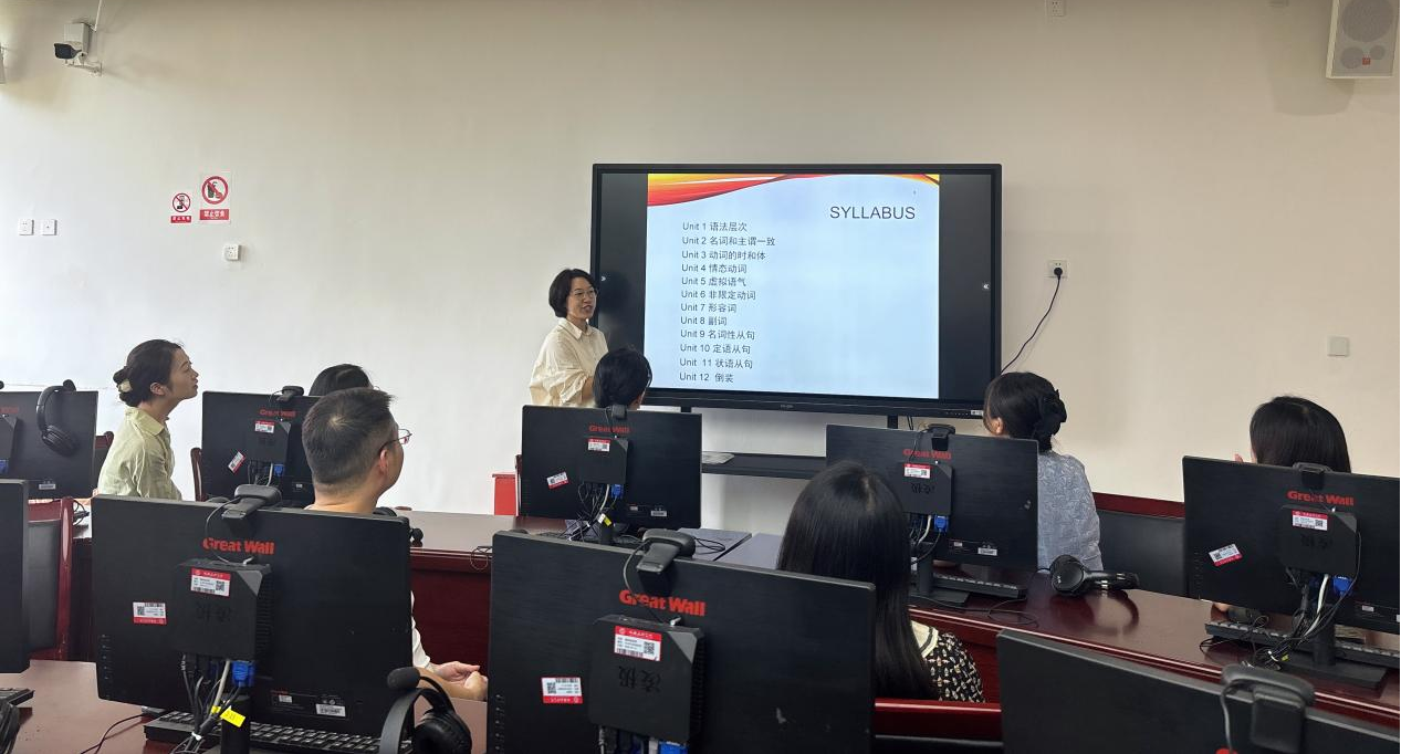 本次“磨课”以课程组为单位,聚焦语言能力培养与AI技术赋能,探索构建高阶思维驱动的英语课堂。采用“说课展示-点评-集体研讨”的形式,围绕本学期各门课程建设展开深入研讨。
