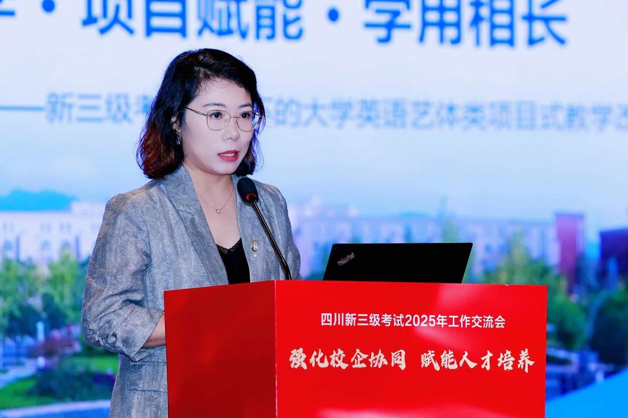 9月26日,四川新三级考试2025年工作交流会于成都举行,我校外国语学院院长助理雷婕教授受邀参会,并作了题为“以考促学、项目赋能、学用相长”的主旨发言,分享了新三级考试视角下我校大学英语艺体类的项目式教学改革,从教学融合、成果转化、人才培养等多维度,系统分享了将四川新三级考试成功嵌入人才培养体系、有效赋能教学的宝贵经验与典型案例,为更多院校提供了有效的实施路径。