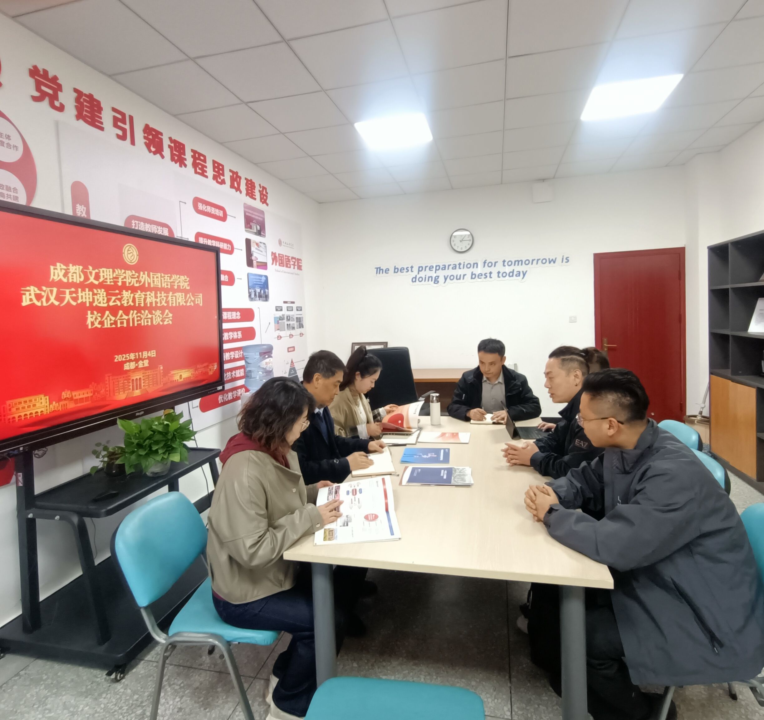 按学院与天坤集团前期之约,此次天坤集团来访,主要与学院洽谈社会化培训、合作举办产业集团等国际文旅相关的深度校企合作办学模式。双方就合作领域和合作方式进行了详细研讨,取得了一致看法,达成了合作意向,为下一步的实施打下了良好的基础。