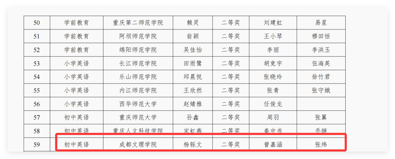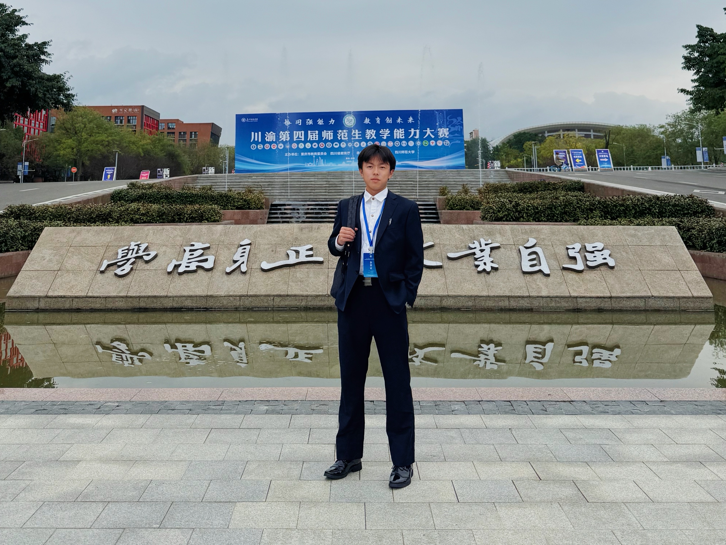 2025年11月16日,以“协同强能力,教育创未来”为主题的第四届川渝师范生教学能力大赛在重庆长江师范学院圆满落幕。我校外国语学院杨轹文同学凭借出色的教学设计和稳定的现场发挥,在激烈的竞争中脱颖而出,荣获初中英语组二等奖。其指导教师曾嘉涵、张炜在备赛过程中给予了悉心指导。