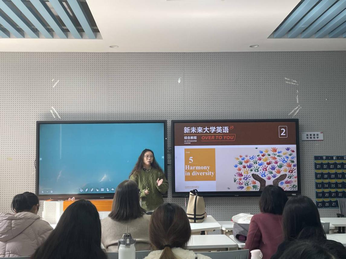 本次示范课,叶老师主要围绕“Harmony in Diversity”主题单元展开。课程充分展示了“以学生为中心”的教学设计,深度融合了现代信息技术,通过任务驱动、小组协作、情景模拟等多元化教学方法,打造互动高效、富有活力的外语课堂。此外,课程还巧妙融入了“课程思政”元素,通过深度挖掘单元主题的文化内涵、价值理念与家国情怀,逐步引导学生在语言学习中正确认识、信奉并践行包容多样性、坚定文化自信,拓展国际视野。