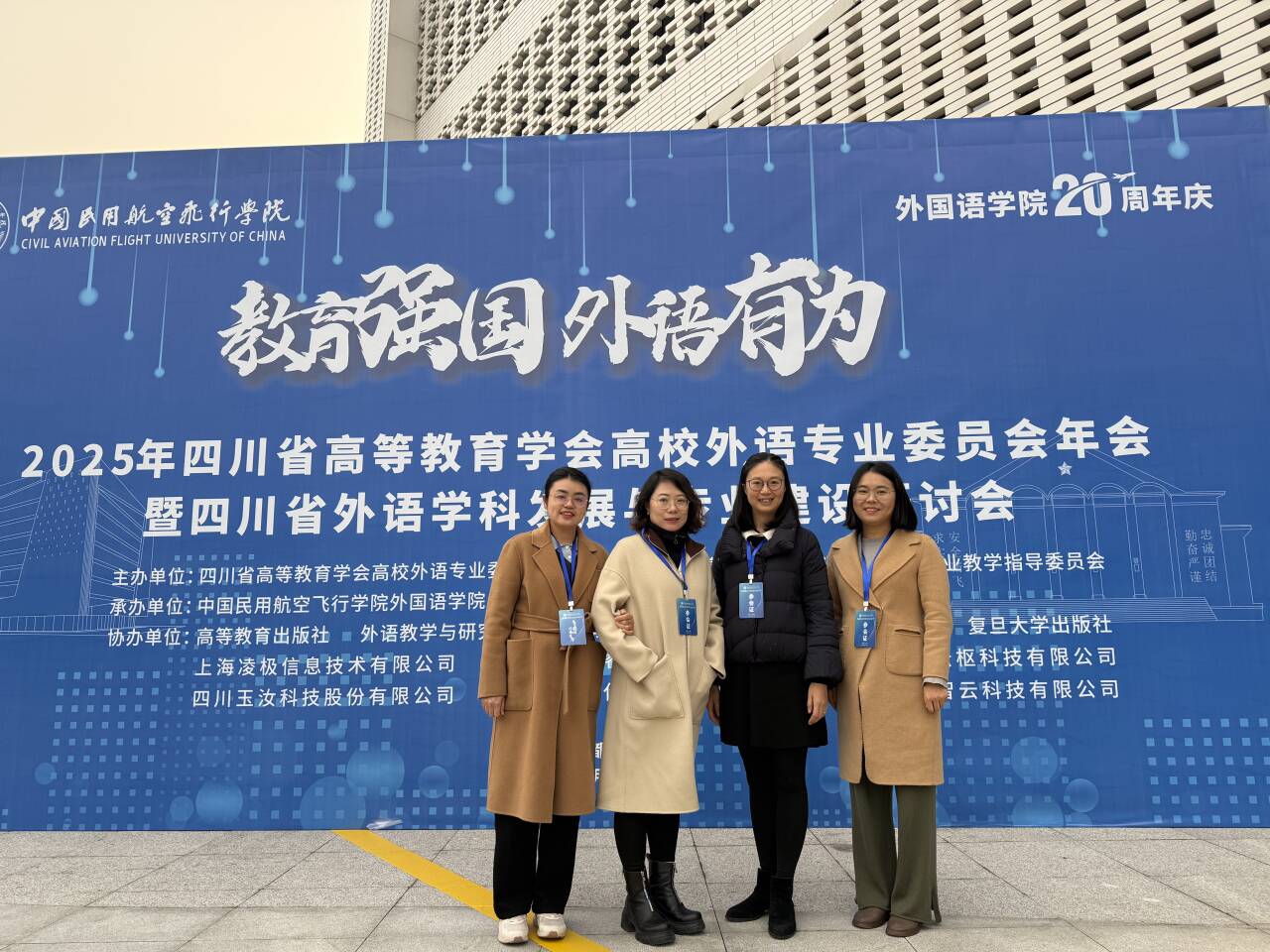 2025年11月28日-29日,2025年四川省高等教育学会高校外语专业委员会年会暨四川省外语学科发展与专业建设研讨会在中国民用航空飞行学院天府校区举办。外国语学院院长助理雷婕,大学外语教研室主任李芍,英语专业第二教研室主任周倩、副主任曾雯参会。