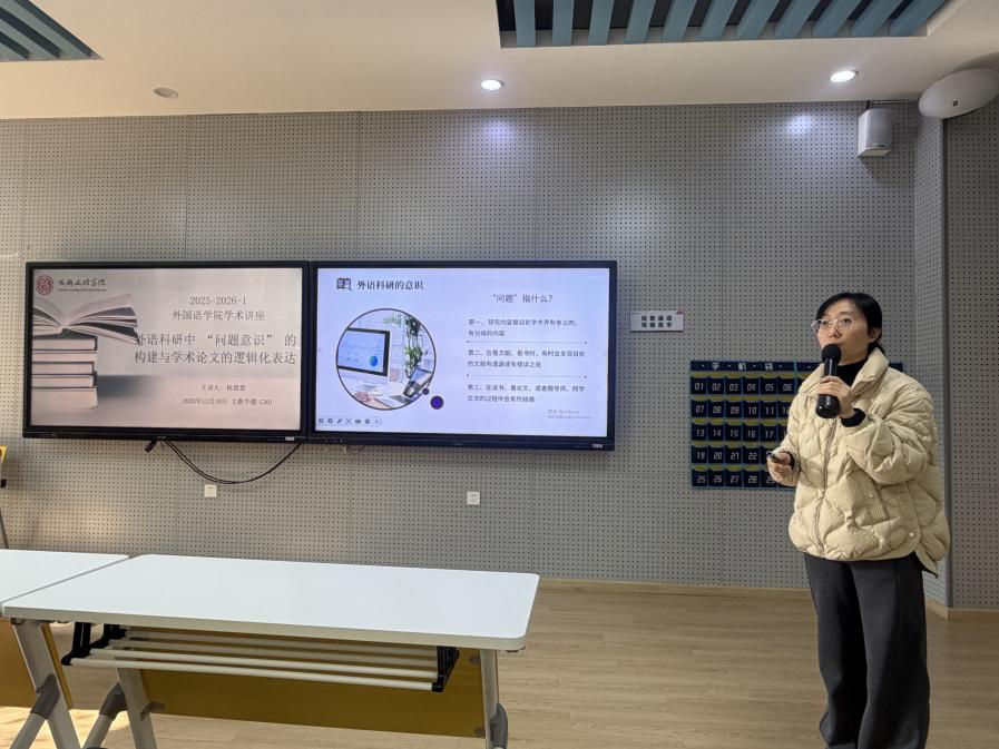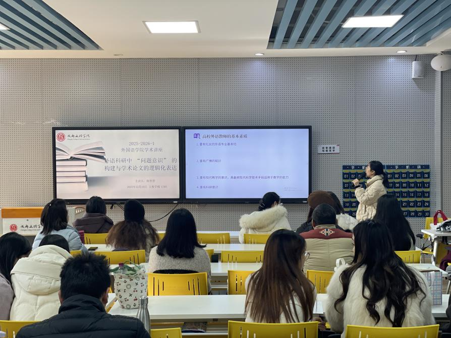 12月10日下午,外国语学院在主教C301举办了一场题为“外语科研中‘问题意识’的构建与学术论文的逻辑化表达”的讲座。
